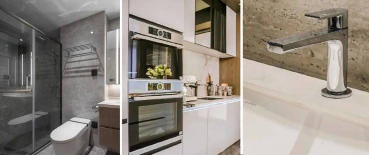 甄选国际一线品牌 精奢全装:德国高仪等卫浴品牌/德国旭格门窗系统/美国耶鲁门锁/比利时得高地板/西门子等电器品牌……全屋配置电磁炉、油烟机、冰箱、洗衣机、微波炉或微烤一体机
