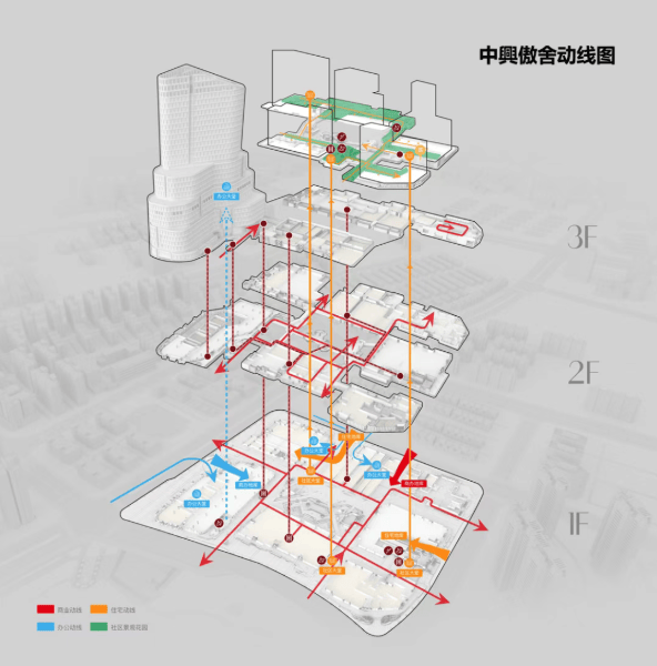 虽然商业和住宅垂直融合,但住宅动线和商业动线是永不相交的“双轨制”模式。
