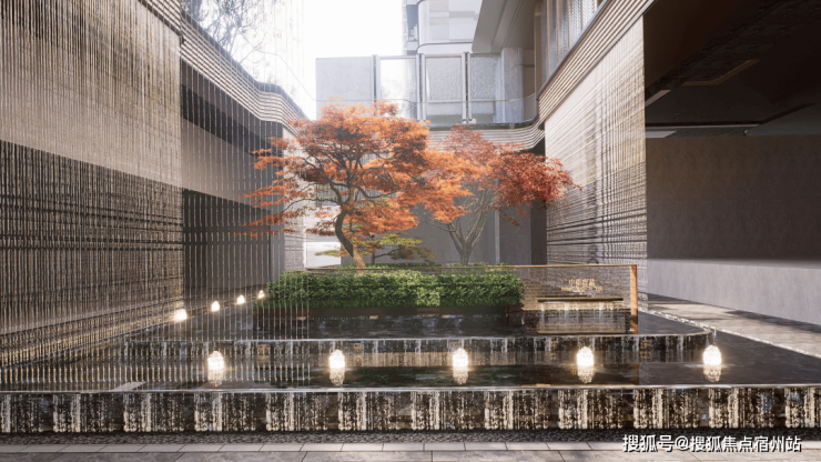 项目利用下沉式景观庭院,结合艺术花园、摩登水景等,打造了一座高端的下沉式会所,规划设有泳池、健身房、行政酒廊等场景。