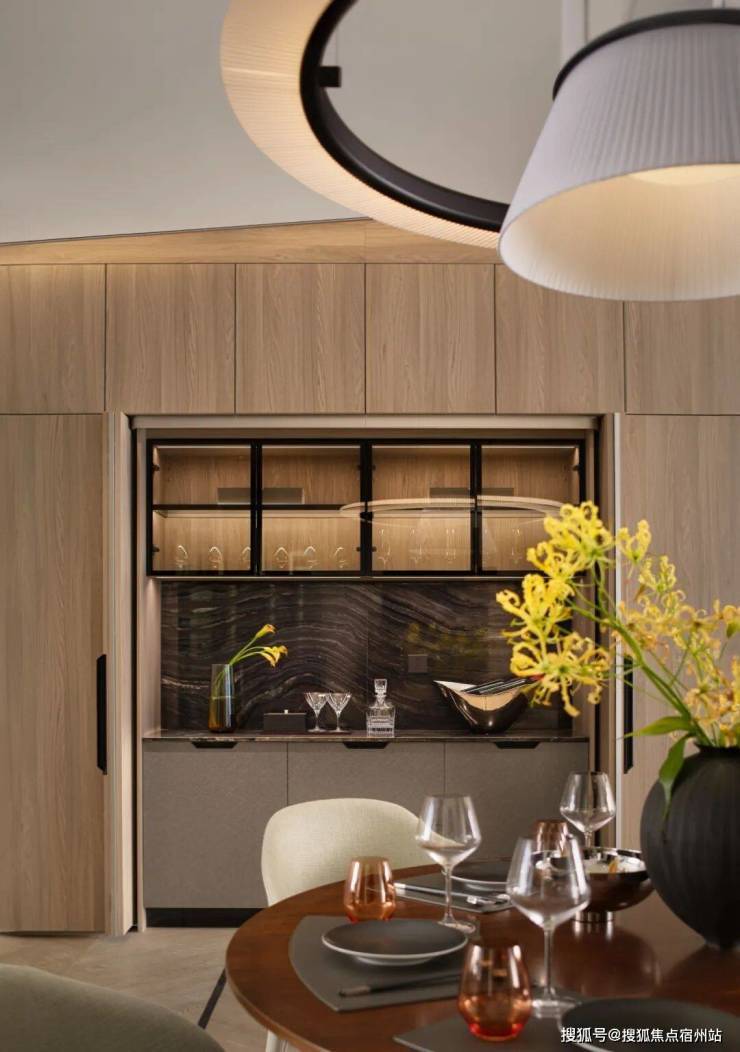 精心设计的灯光与水磨石地面,将功能性空间转化为具有五星级酒店仪式感的隐奢第一厅 ,让每一次回家都成为从喧嚣步入宁静的转换。