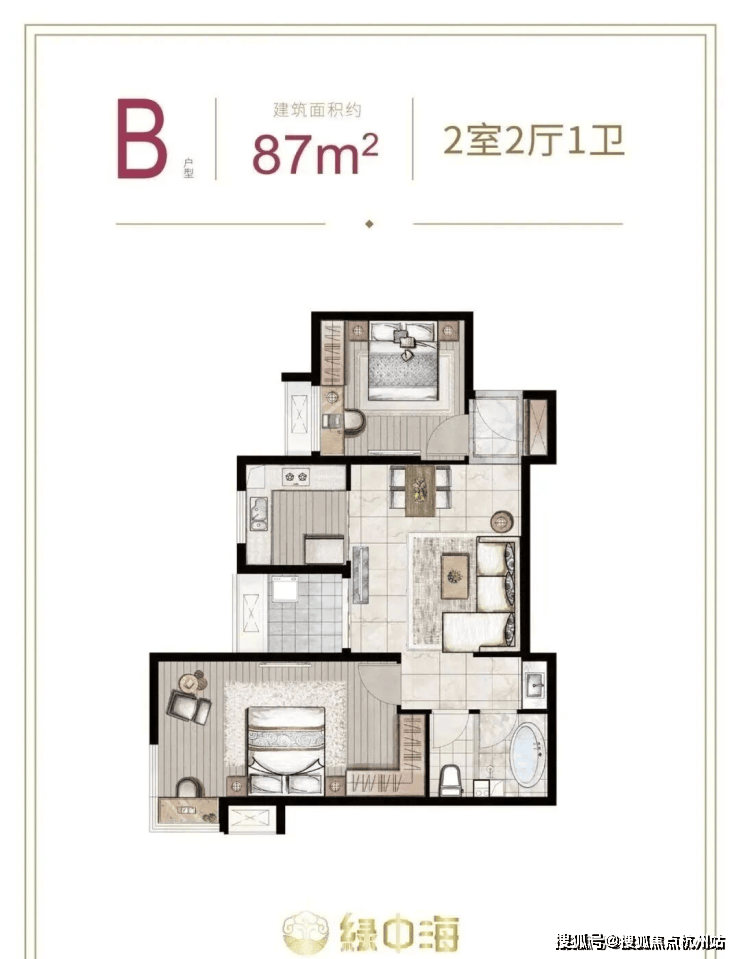 建面约87-89㎡2房2厅1卫