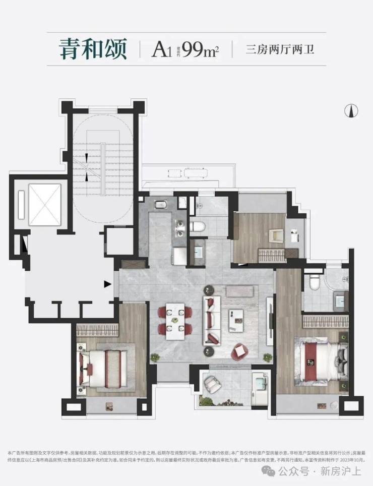 约99㎡3房2卫户型是上海市场中最主流的面积段之一,但印象青城官方售楼处:400-1010-064❄️⛄️的户型设计却超脱以往。