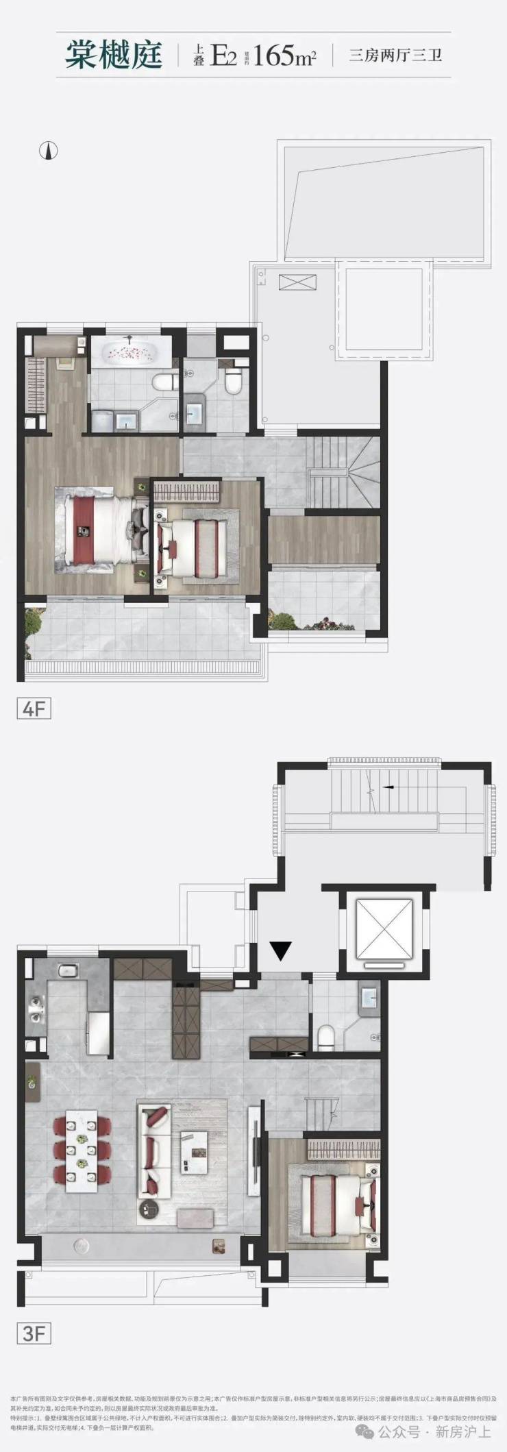 除此之外,项目还有少量叠加别墅产品,附全套户型图: