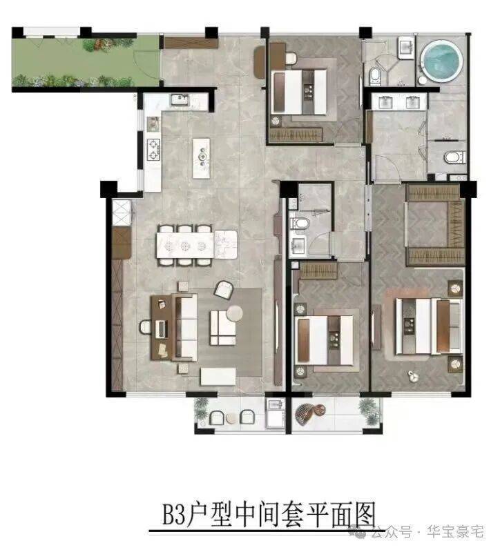 230㎡六房两厅三卫:子母户型可选,总价约1000万,含三套房设计