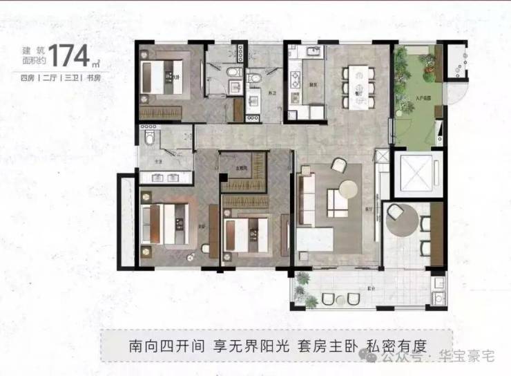 172㎡四房两厅三卫:南向四开间设计,总价约650万起