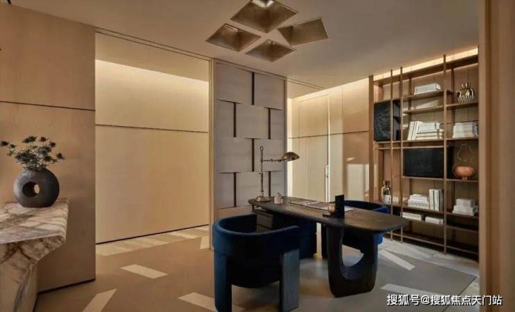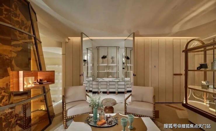 在这里,男女主人可尊享各自独立的沙龙空间,也分别配有珍宝阁和休闲区,可展示自身的爱好与收藏,可与好友相约小聚下午茶,也可享受独酌。这无疑是家中可唤醒感官的角落,让自身的品格与态度得以安放,让家空间与居者,相互滋养,相互成就。