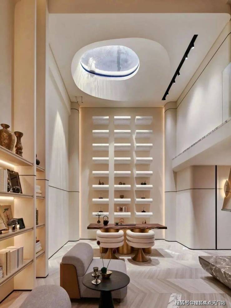 阅读区与茶室围绕在侧,更有配齐Dry Kitchen的酒吧。饮茶时光里,上层室外庭院的水景天窗在此投下变幻光影,让地下层亦浸润在盈莹逸动之中,且赋予整个空间艺术剧场般的特色。
