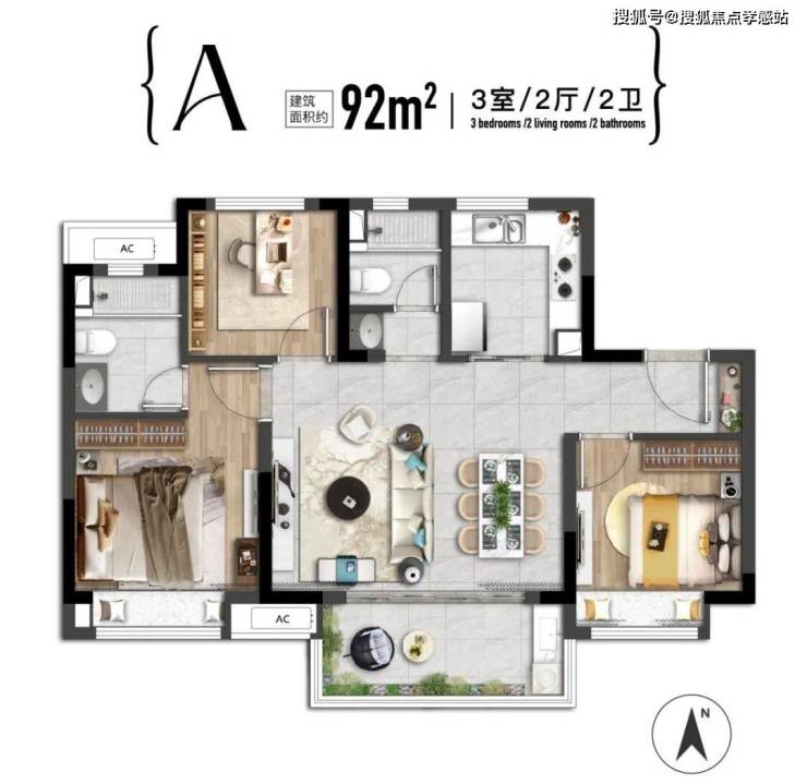 此外云湾还有2幢洋房,均为建面约92㎡毛坯3房,四开间朝南,尺度感很好;主卧舒适的套房设计,将生活品质感拉满。