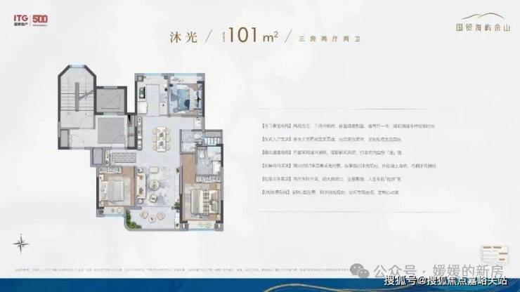 除了叠墅外,全社区仅4幢建面约101㎡沐光全景小高层,通过前瞻排布,几乎做到了户户景观无遮挡。
