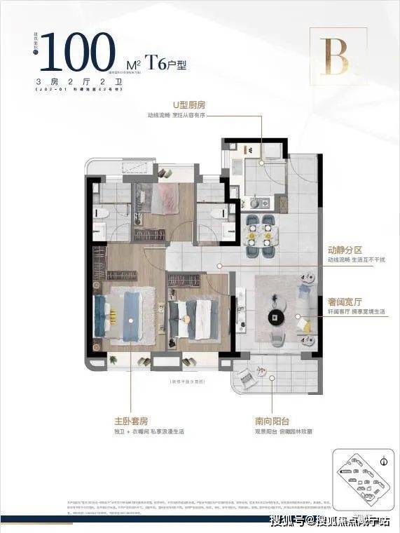 建筑面积约100㎡/118㎡三房两厅两卫,三口之家/三代同堂从容满足,南北通透外,餐客一体,动静分离居住舒适度更高,三开间朝南,三房全飘窗,日常在阳台上饲花弄草,生活将被赋予高仪式感。