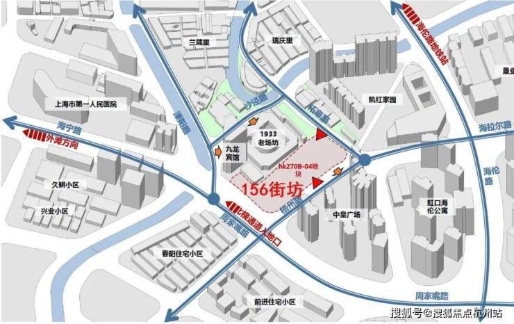 「越秀·外滩樾」项目地块四至范围,东至:梧州路,隔壁是中皇广场;西至:hk270B-02,隔壁就是1933老场坊;南至:周家嘴路北至:柘皋路。