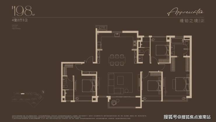准一梯一户的配置,让业主独享入室前厅的过渡空间,玄关处的可定制收纳系统,让归家时刻剥离喧嚣,私密与尊崇感不言自明。步入室内,约14米南向四开间以无界视野拥抱阳光,LDKB一体化设计将客厅、餐厅、厨房与约7米宽幕阳台串联成通透的生活场域,无论是家庭聚会的烟火气,还是独处时的静谧,皆能找到理想场景。双奢阔套房设计则重新定义居住的从容:主卧套房以全景飘窗及酒店式卫浴空间,构筑私享领地;次卧套房兼顾长辈或子女的起居需求。南向双套卧配置,让多代同堂的生活既有温度又存边界。细节之处,一线精装品牌更显匠心:日立中央空调(或同档次品牌)、博世地暖(或同档次品牌)、迈迪龙新风(或同档次品牌)、高仪花洒(或同档次品牌)、恩仕(马桶)、高仪(卫生间龙头花洒)、弗拉卡(厨房龙头)、西门子三件套、怡口(净水器)……一切都在无声中诠释着塔尖生活的质感。