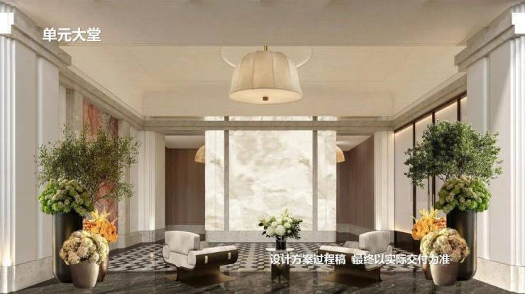 公区方面,从归家社区大堂、大堂序厅、以及入户单元大堂一路看过来,体现出一套脉络完整,层层递进的海派顶奢设计语言。