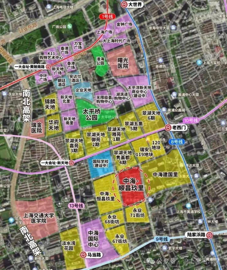 其坐落于黄浦区核心区域,北邻活力四射的新天地文化圈,这片区域汇聚了全球时尚潮流与前沿文化,是上海国际化都市形象的生动展示窗口。向南则与承载着上海深厚历史底蕴的老城厢紧密相依,漫步其间,古老弄堂与百年建筑诉说着往昔故事,浓厚的人文气息扑面而来。项目还毗邻繁华的淮海中路商圈,这条被誉为 “东方香榭丽舍大街” 的商业街,高端品牌旗舰店林立,是时尚购物、休闲娱乐的天堂,为居者提供了接轨世界潮流的生活体验。