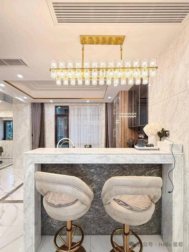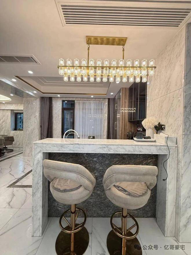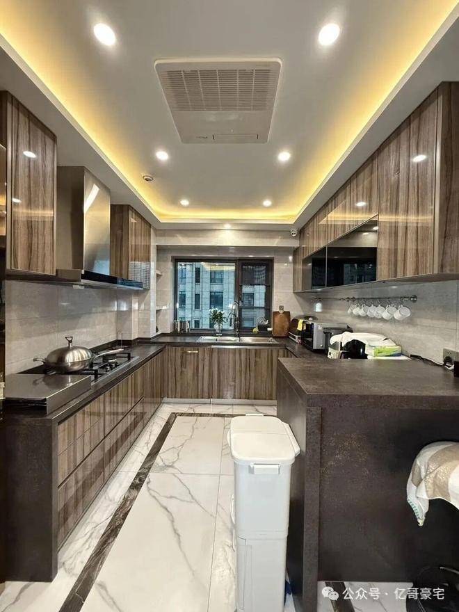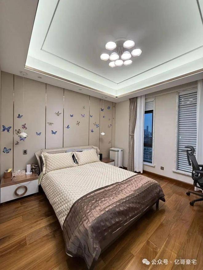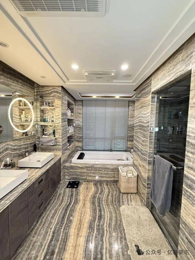 客餐厅进口大理石,卧室是全实木地板,电动窗帘,厨房用的是来自德国的Gaggenau,水龙头是来自美国的Moen。卫浴是来自法国的DECOTEC ,软水来自英国的Doulton,开关面板来自德国的Schneider。这些技术放在十五年后依然不落伍。