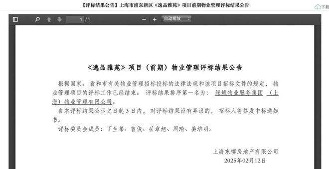 2025年2月绿城物业服务集团(上海)物业管理有限公司中标滨江一品苑前期物业项目,正式成为滨江一品苑物业。