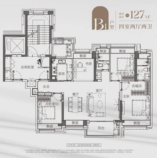 ℳ建发海阅首府售楼处电话:400-8787-740ℳℳ来看看更大一点的户型—— 建面约127㎡超阔四房,同样是 南向横厅设计,并拉伸至4开间,空间舒阔。 主卧套房设计,也有足够的收纳,打造专属秀场。