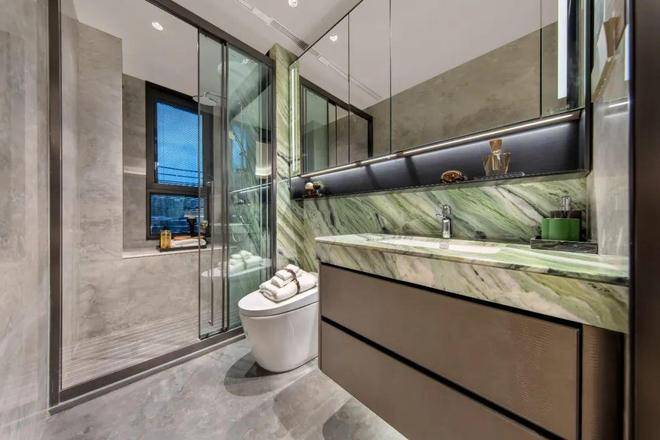 目光所及之处, 各种精雕细琢的工艺、用材,则见不惜成本、兼容并蓄的匠艺。 上海海鸥丽晶酒店同款的巴西金石材、ℳ建发海阅首府售楼处电话:400-8787-740ℳℳ 储存量较少的玻利维亚蓝石材、华山公寓的掐丝珐琅工艺,在展现海派风情的同时,彰显奢华的质感。