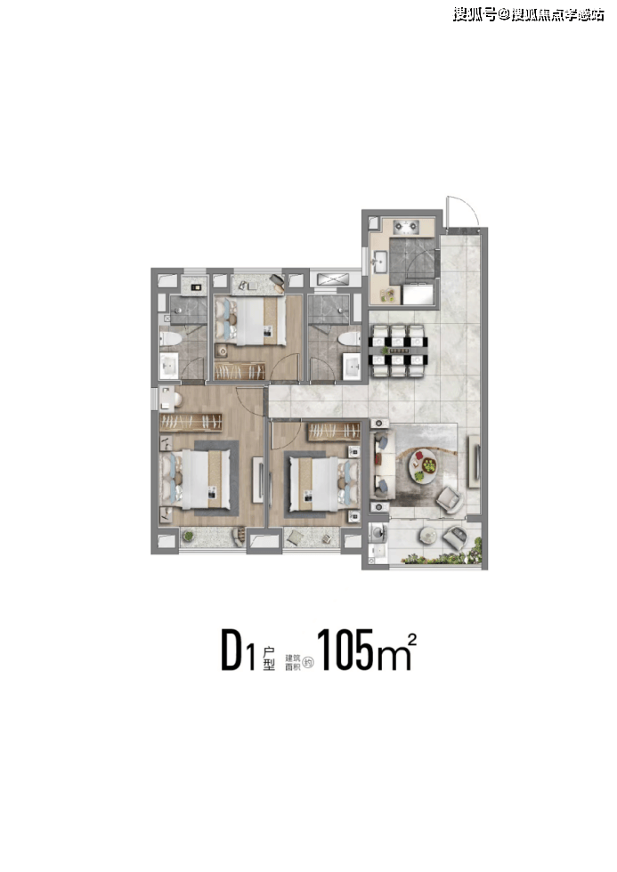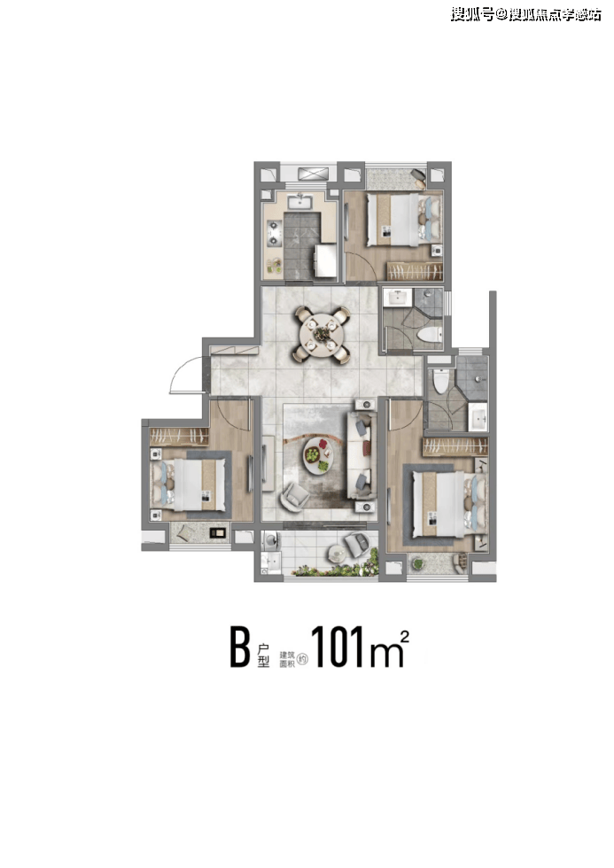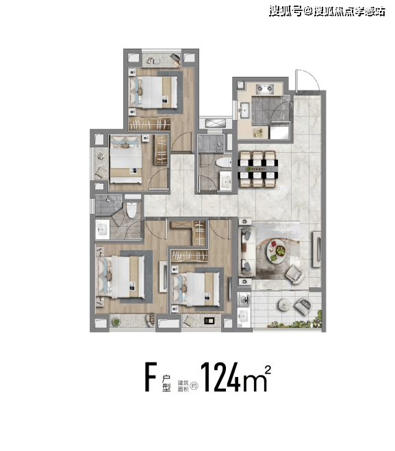 ⤴️ 大名城映辰售楼处热线☎️☎️:400-9966-940✔✔建面约124m²四房,市面常见的四房普遍要135平,这个约124平米户型功能性拉满,且控制了总价,给予更多小伙伴一步到位的机会。