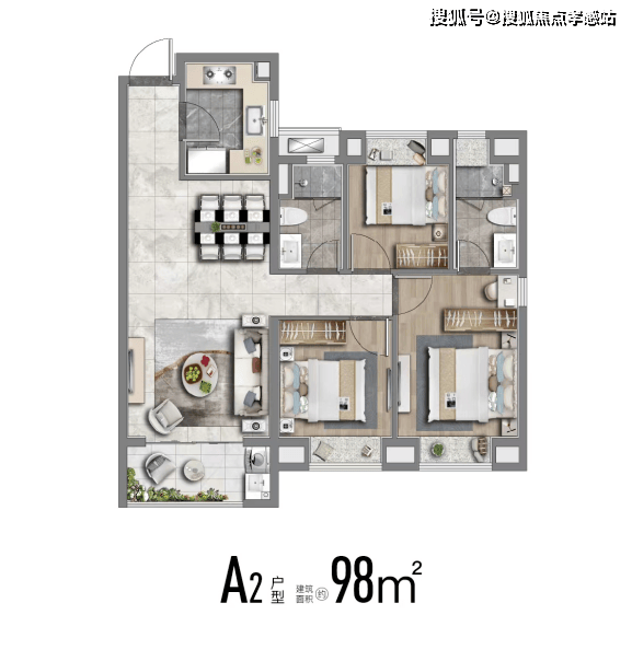 建面约98-124m²3-4房