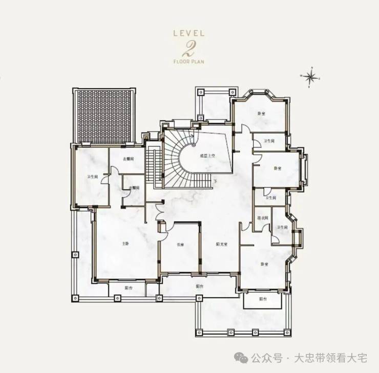 纯地上两层,建面约850㎡(7房4厅6卫)