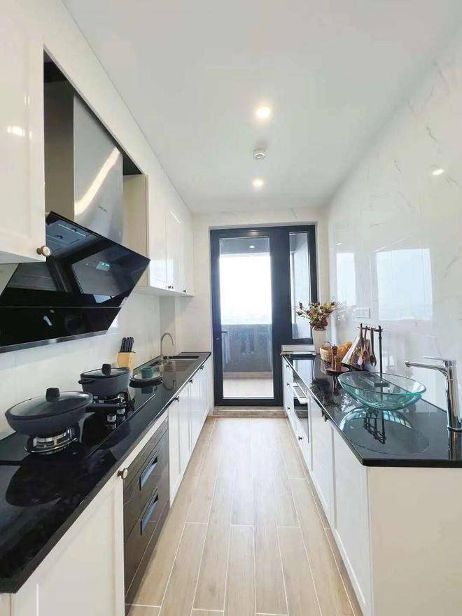 钢琴烤漆面的整体橱柜,灶台,油烟机,洗碗机,蒸烤一体机采用的是国际知名品牌樱花;