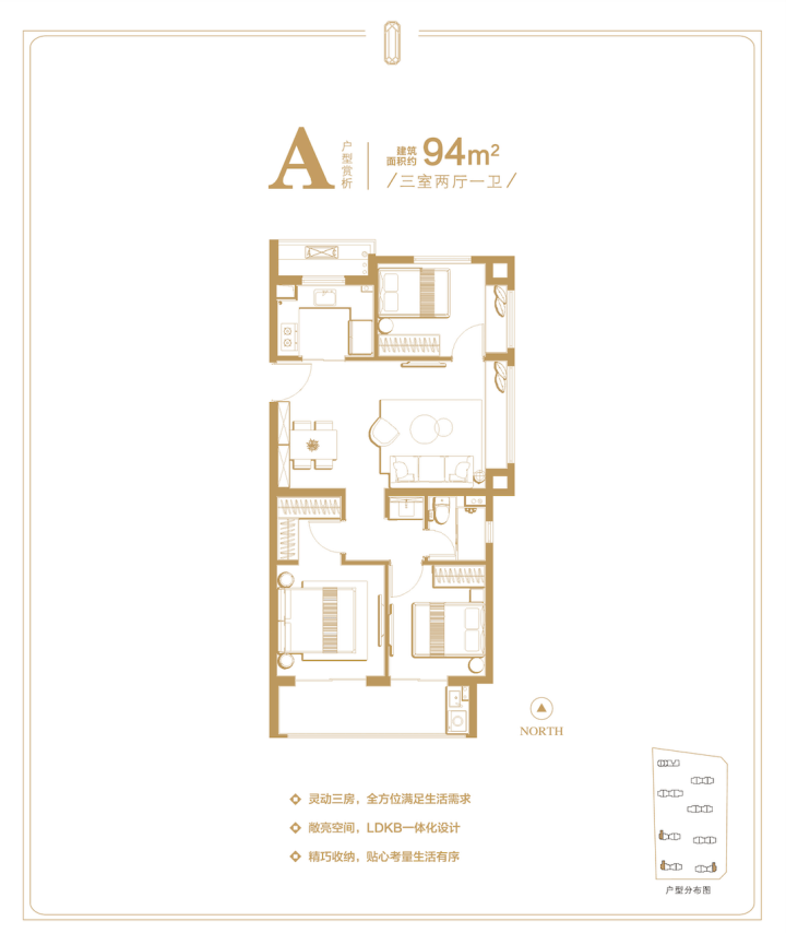 项目共计规划8栋14-18F高层住宅,规划可售住宅套数528套,主力建面约94-122㎡3房,功能齐全,足够匹配不同家庭结构的需求。
