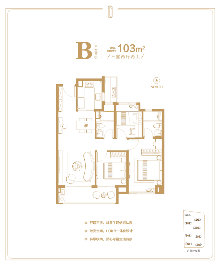 建面约103㎡的三房两厅两卫
