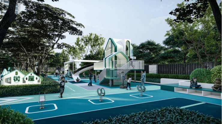 园林景观方面,在着重功能性场地设计基础上,以全龄儿童、青年健身、康健花园和会客花园四大重点关注,打造格调、美学、与自然共生的心之居所。