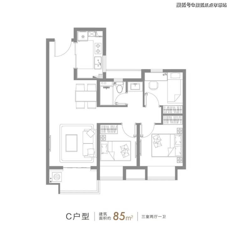 光明星城售楼处热线☎️☎️:400-9966-940🐾🌴 建面约85㎡的3房2厅1卫,三开间朝南+整体动静分离的设计,都保证了这个户型的居住舒适度。整个户型全明设计,户型方正,南北通透,卫生间干湿分离,光明对于产品细节的把控力可见一斑。 光明星城售楼处热线☎️☎️:400-9966-940🐾🌴