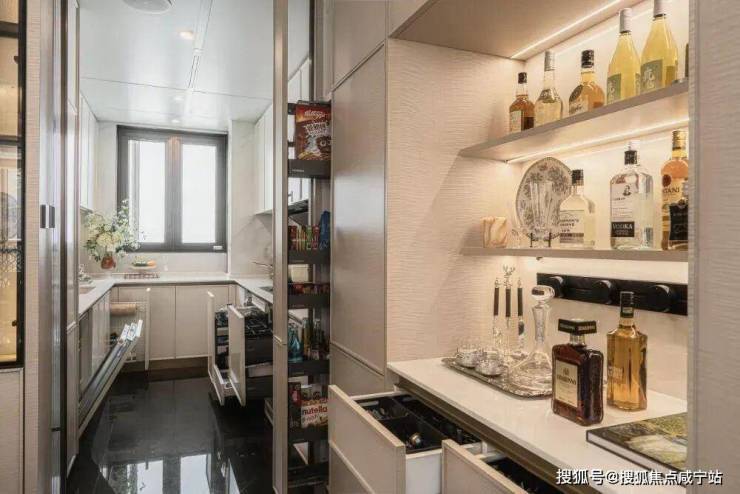 室内设置大金中央空调、新风系统和地暖,搭配斯麦格冰箱,住起来特别舒服。厨房有博世四件套洗碗机、蒸烤一体机、油烟机和灶台,做饭很方便。全屋岩板铺装,既耐用又显档次。卫生间干湿分开,配了高仪卫浴、智能马桶、暖风机,主卫还有浴缸和美妆冰箱,洗澡、化妆都很享受。