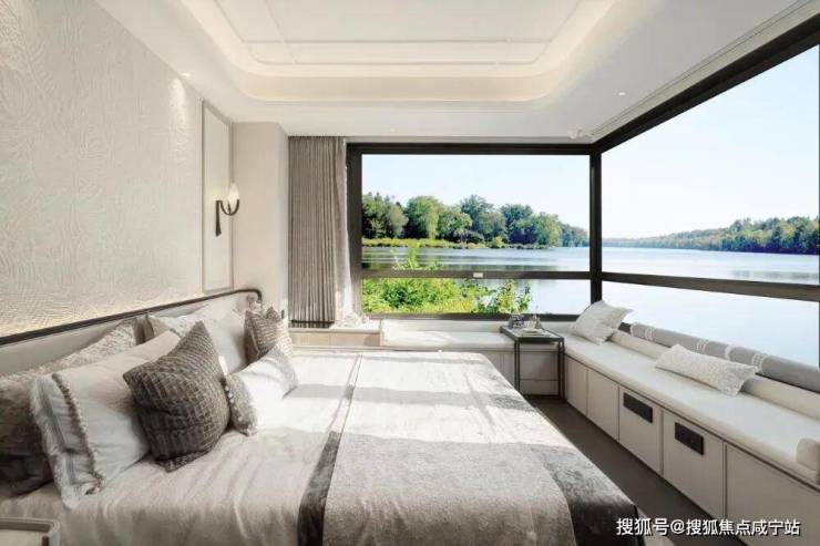 约270°转角飘窗,把不同角度的阳光和风景都框进来,阳光洒满整个窗台,外面的景色一年四季都在变,每天看到的画面都不一样,特别有生命力。