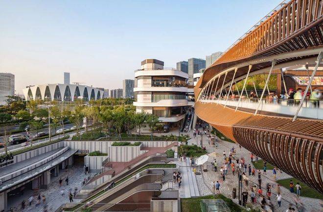 另外,项目还打造了一纵两横森氧艺境城市社区,其中涵盖了约400米无界宽景自然艺术轴、约460米流动的江之界森林界面以及约240米社区街心焕活轴。