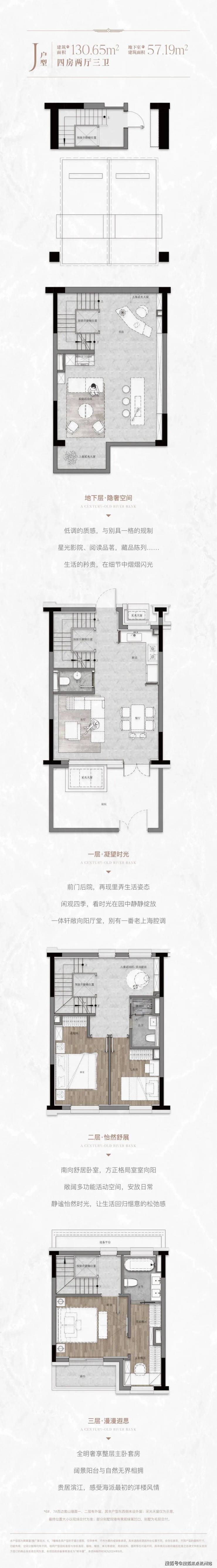主力建面约130㎡,以地上3层,地下1层为主,动静分区,4层私域空间,互不干扰。