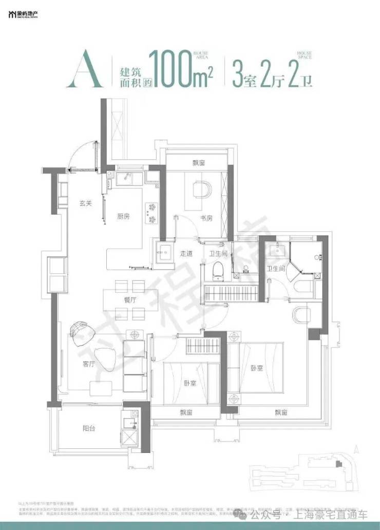 高层住宅共26层,一梯两户,得房率较高,空间灵活,部分户型有270°转角飘窗,建面约102平的三房户型,均价12.5万,总价约1300万元左右