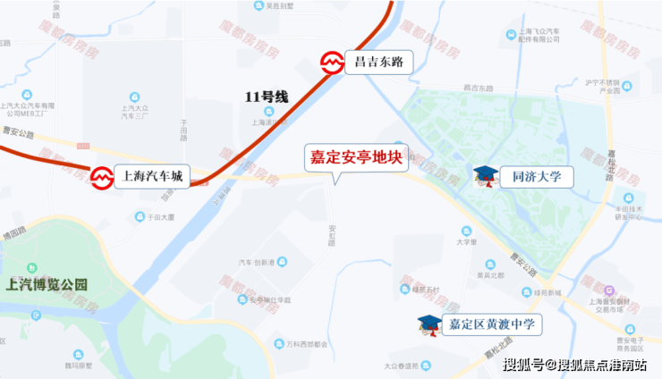 地块距离11号线昌吉东路站直线距离约1.3公里,东侧及时同济大学嘉定校区。