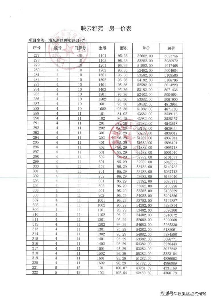 项目一房一价表▼