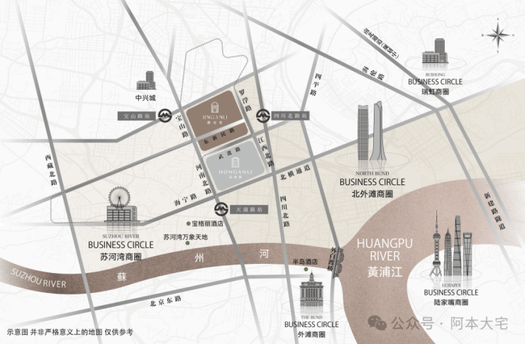 步行可达地铁10号线四川北路站、12号线天潼路站;3公里内串联南京西路、外滩源、北外滩与陆家嘴。