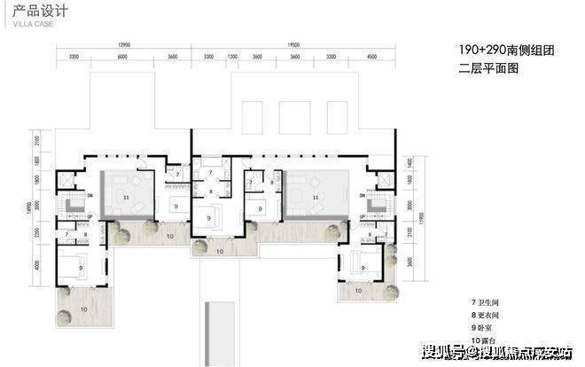 二层都是套房设计+露台+客厅挑空,190的二层是双套房、290的二层是三套房。