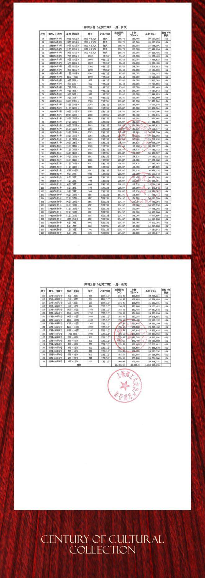 项目一房一价表▼