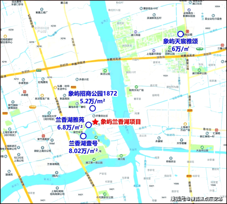 环看兰香湖周边楼盘,可见象屿地产是闵行南区的老熟客了。