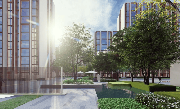 值得一提的是,项目将社会公共交通系统、城市道路系统与社区道路系统相联街,结合自然生态河道、公建、商业,规划合理的人流动线布局, 使得整个居住区与城市网连成一个整体,实现社区与城市的联系与互动。