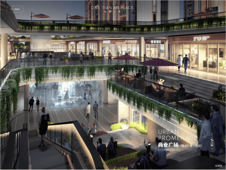 通过社区内地上和双层地下的三层立体商业设计,将地下部分做到了与地铁站贯通。对于工作繁忙的年轻人,下班地铁出站后即可实现用餐、购物、居家的一体化生活享受。大大减少了外出通勤的时间成本。