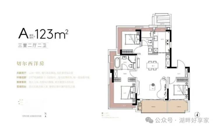 飞机户型+洋房设计,搭配双阳台+多飘窗(边套含双270°转角飘窗),拓展空间实用性;层高约3.15米,告别压抑感;客厅设计更具选择:竖厅面宽约4.5米,宽敞通透;横厅面宽达约6.1米,多出灵动空间可作开放式书房、茶室,适配多元生活场景。