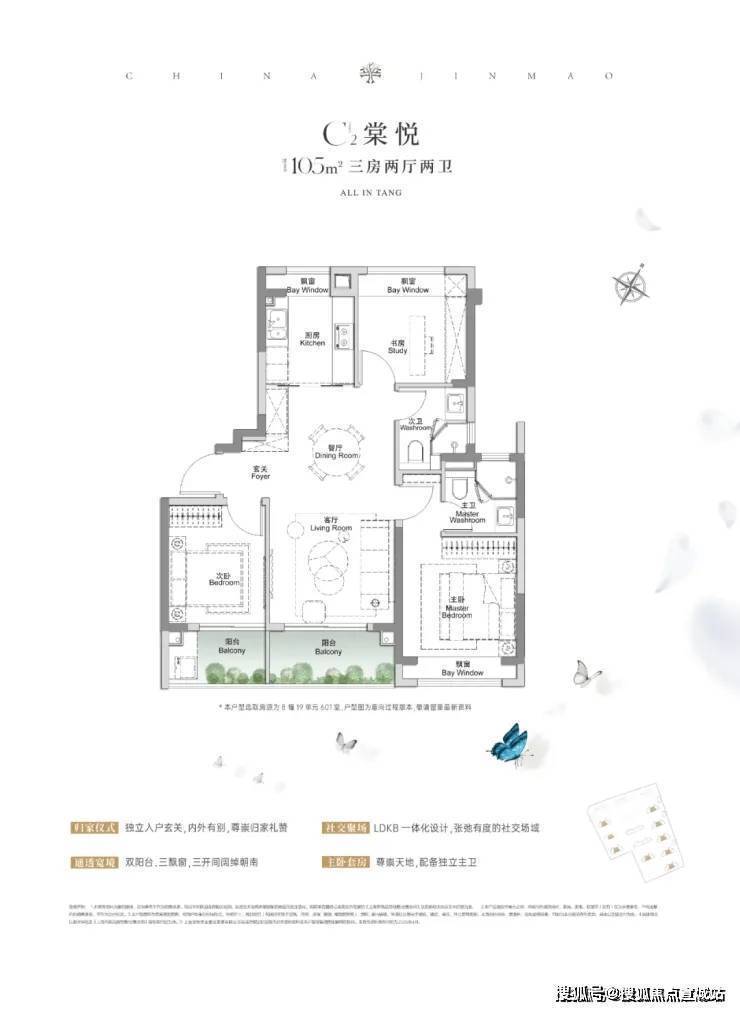 我们具体以本次加推的建面约105㎡户型为例: