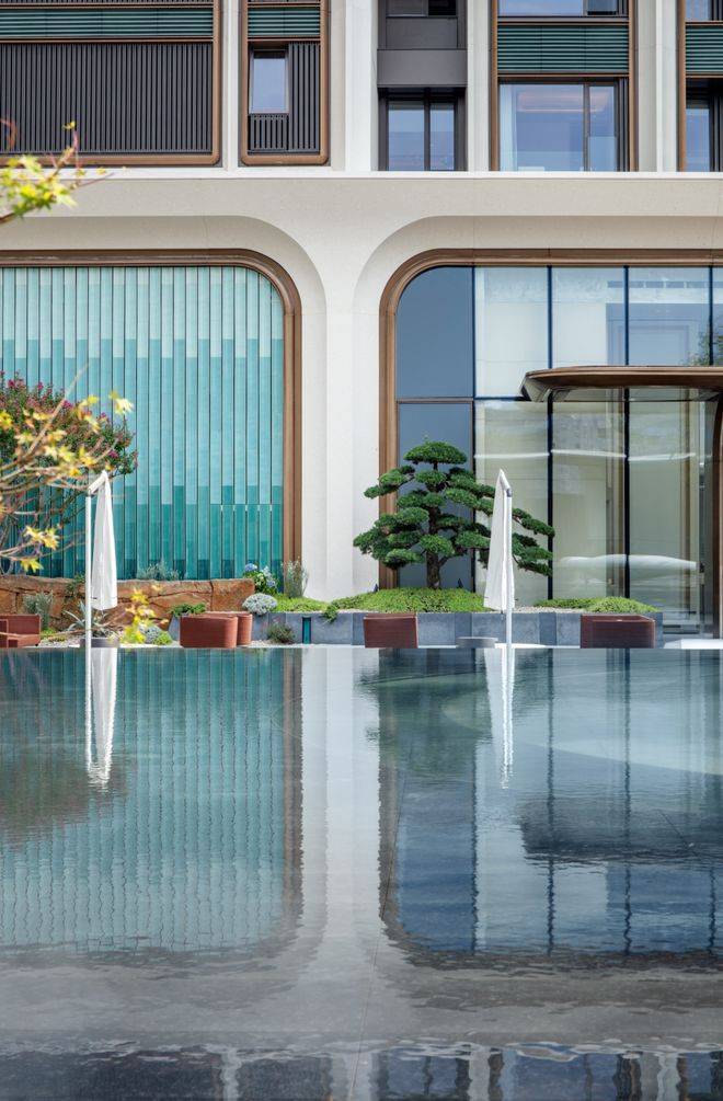 九艺落位,门前皆景:从入口的石艺,到最后一个庭院的泉艺,中建玖上琅宸每一栋楼的门前,都有对应定制的设计主题。