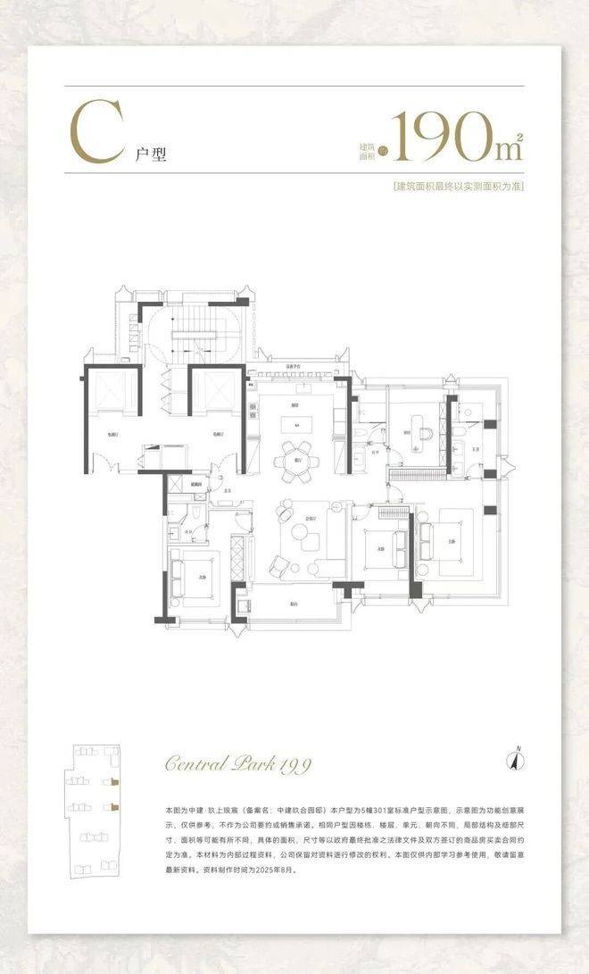 190平方米户型为低密类洋房产品,仅22套,强调静谧与舒适,营造出贴近自然的低密度生活氛围;中建玖上琅宸售楼处电话:400-8787-740