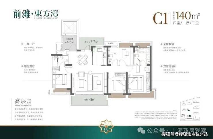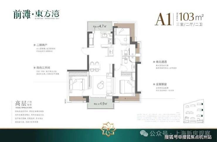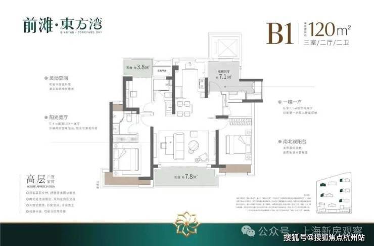 浦东三林「前滩·东方湾」少量建面约103-120㎡3房,均价8.38万/㎡!