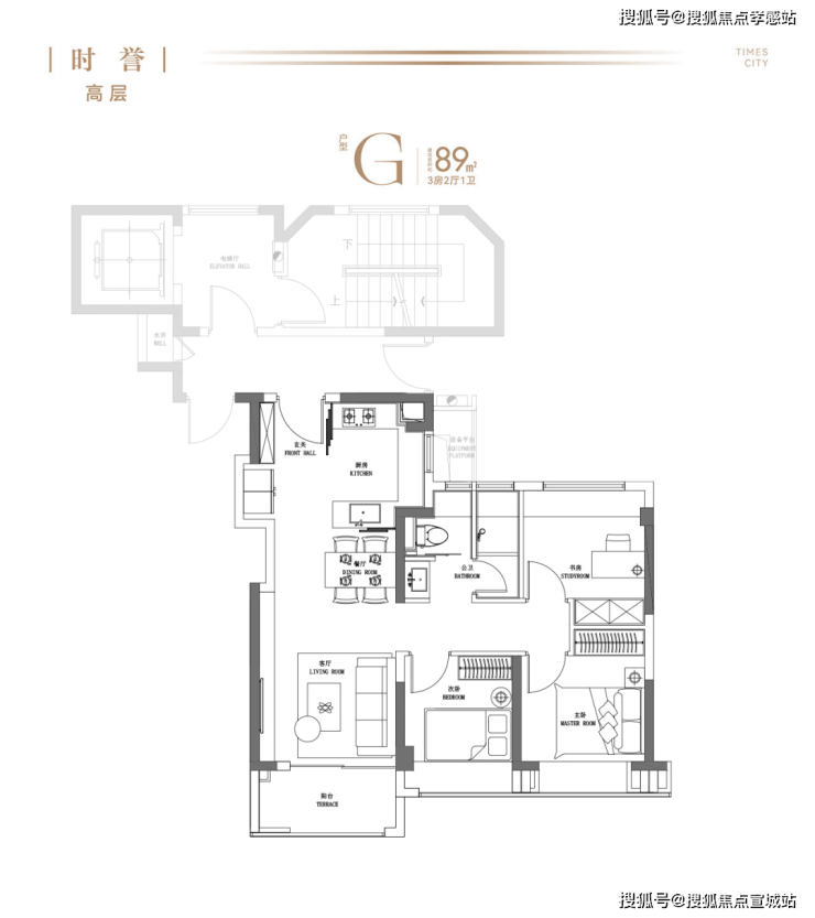 建面约89㎡3房(高层)小户型竟能装下这么多巧思!