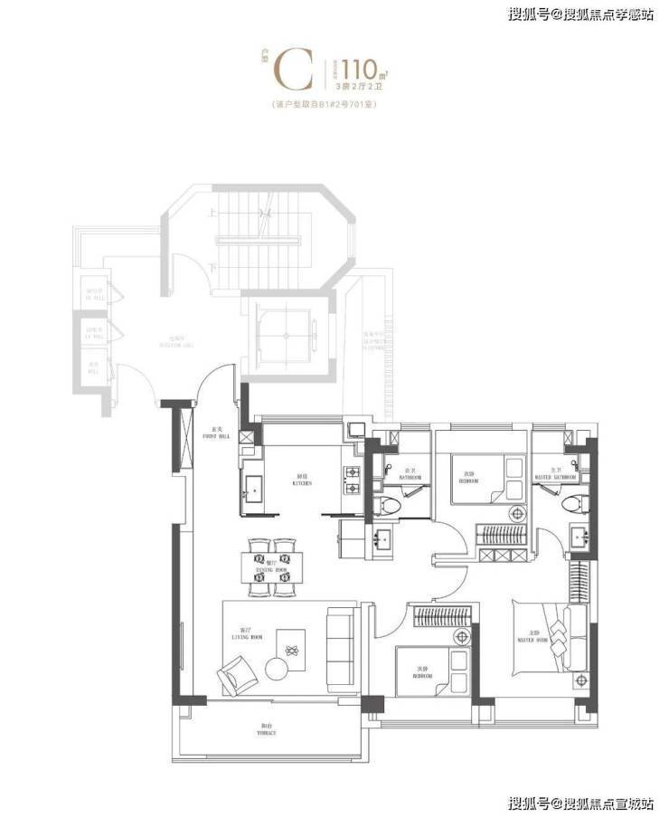 建面约110㎡3房2卫(小高层)▼